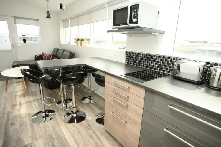 Подходящий вариант для большой компании: апартаменты «Skýjaborg Apartments» расположены в Хёбне. Эти апартаменты находятся в самом центре города. Утром — выпейте кофе, наблюдая из окна за жизнью города.