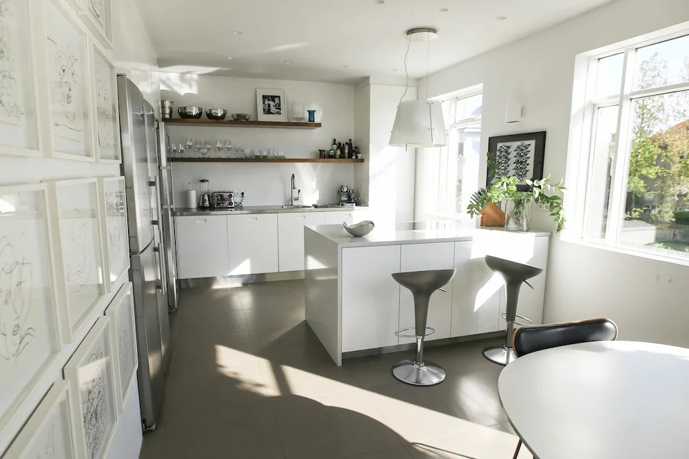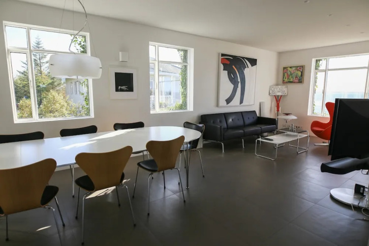 Отель Ocean View Luxury Penthouse full of art, адрес на карте Рейкьявик, Ægisíða 86, с описанием номеров и возможностью онлайн бронирования на ресурсе vashotel.ru , цены проживания и удобства.