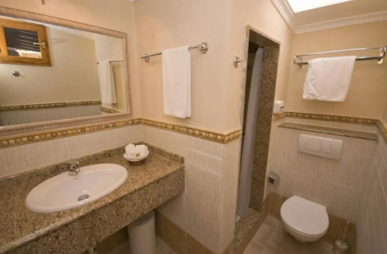 В номере вы найдёте душ и телевизор. Оснащение зависит от выбранной категории номера.