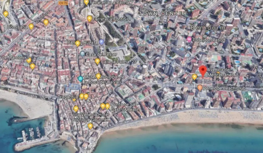 адрес на карте Бенидорм, Avenida del Mediterráneo, 8 Piso 4 C, 03503 Benidorm, Spain, с характеристиками