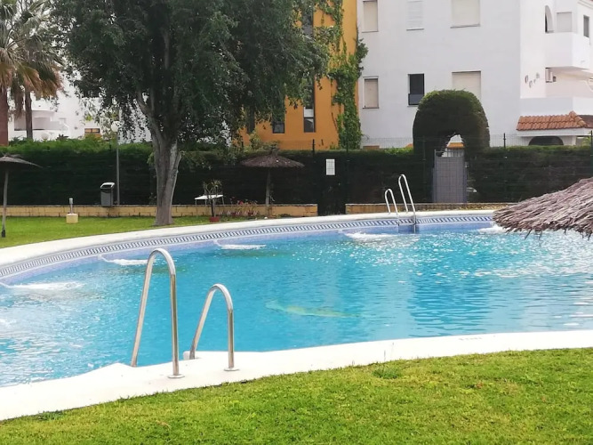 Отель House with 2 Bedrooms in Chiclana de la Frontera, with Shared Pool And Enclosed Garden 3 звезды, адрес на карте Чиклана-де-ла-Фронтера, Marismas de la Almadraba, Appt 16, 11130, Chiclana de la Frontera, Andalusia, ES, с характеристиками номеров и возможностью онлайн бронирования на ресурсе ВашОтель.RU , цены проживания и удобства.