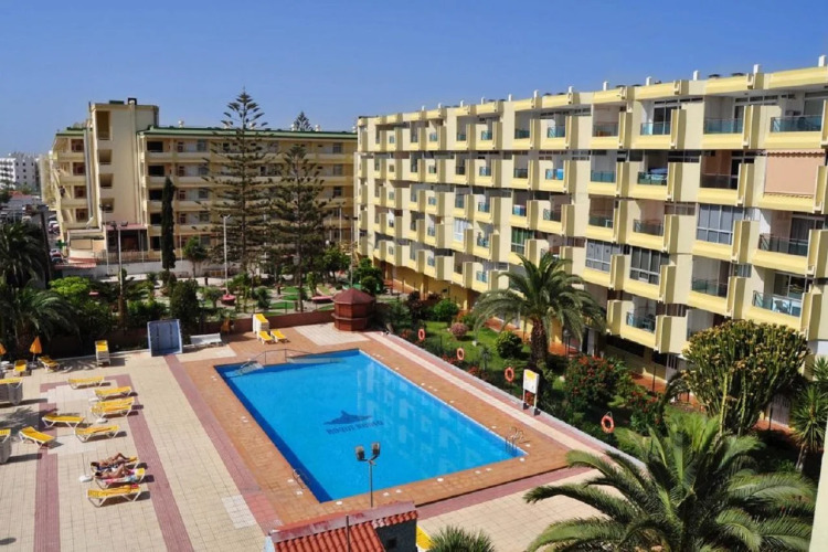 Отель Apartamentos Roque Nublo, адрес на карте Плайя дель Инглес, Avenida de Tirajana 28, с описанием номеров и доступностью онлайн бронирования на сайте vashotel.ru , стоимость проживания и удобства.