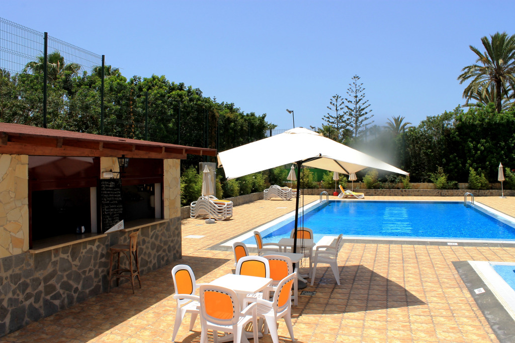 Отель Bungalows Rebecca Park 3 звезды, адрес на карте Плайя дель Инглес, Calle Noruega 1, с характеристиками номеров и правом онлайн бронирования на сайте vashotel.ru , стоимость проживания и удобства.