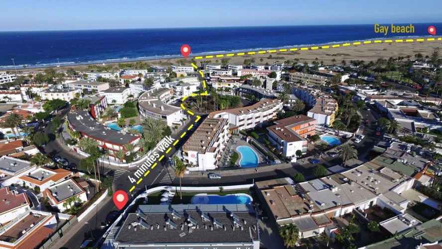 Подходящий вариант для большой компании: апартаменты «Tajinaste Beach Apartments» располагаются в Плайя дель Инглесе. Эти апартаменты находятся в центре города. Перед сном есть возможность прогуляться вдоль главных достопримечательностей. Рядом с апартаментами — Экуменический храм Эль-Сальвадор, Playa de Cochino и Пляж Маспаломас.