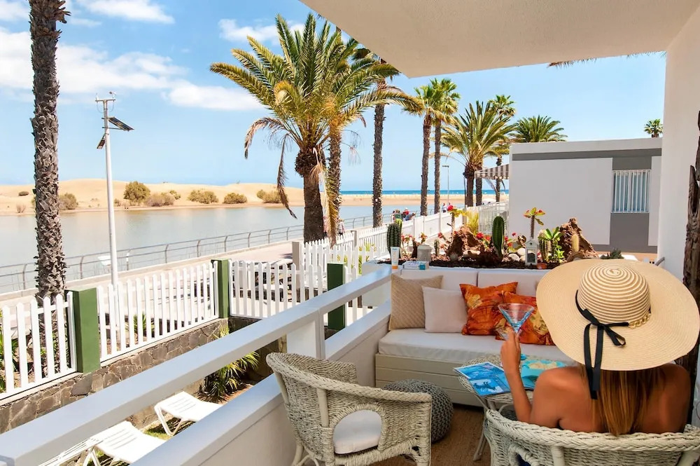 Отель Maspalomas Beach Front Apartment Ref. AB, адрес на карте Маспаломас, Avenida del Oasis, с описанием номеров и правом онлайн бронирования на площадке vashotel.ru , цены проживания и удобства.