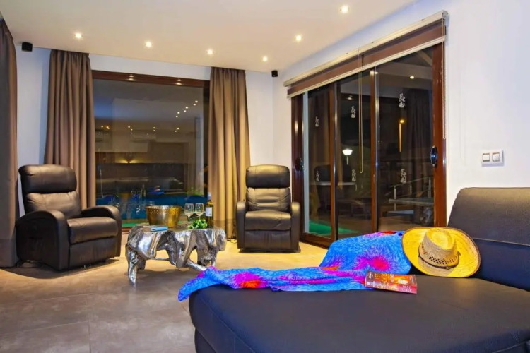 Скучно не будет, ведь на вилле к услугам отдыхающих площадка для барбекю. Здесь будем баловать себя водными процедурами: есть бассейн и открытый бассейн.