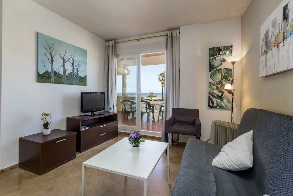 Отель Beautiful 2-Bed first beach line apartment for 6, адрес на карте Дениа, 03700 Denia, Spain, с описанием номеров и доступностью онлайн бронирования на сайте vashotel.ru , стоимость проживания и удобства.