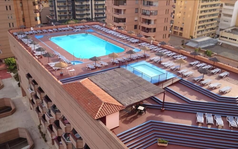 адрес на карте Фуэнхирола, Hotel Las Palmeras, Calle Martínez Catena, 6, 29640, Fuengirola, Malaga, ES, с характеристиками