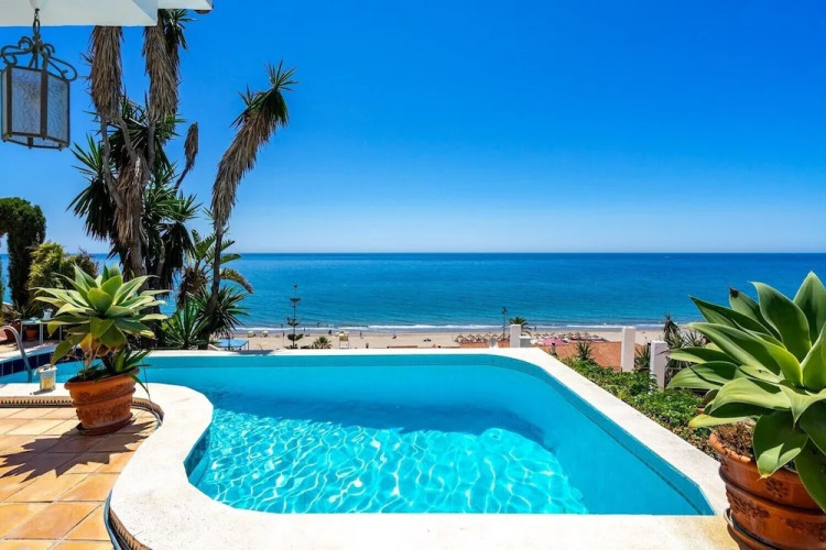 Отель Outstanding beachfront villa Fuengirola 4 звезды, адрес на карте Фуэнхирола, Avenida Carvajal, с характеристиками номеров и доступностью онлайн бронирования на ресурсе vashotel.ru , стоимость проживания и удобства.