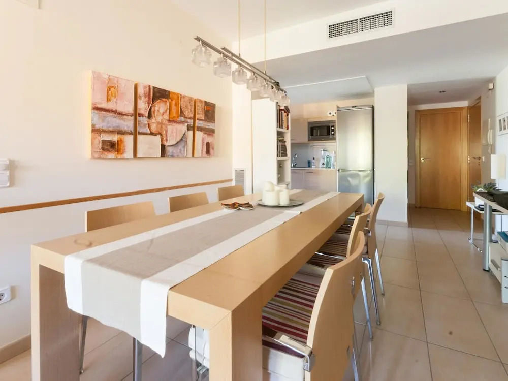 Отель Classic Apartment in L'escala Spain With Parking Facility, адрес на карте Ла-Эскала, Camí Ramader 35, 2º-3ª, с описанием номеров и возможностью онлайн бронирования на сайте vashotel.ru , цены проживания и удобства.