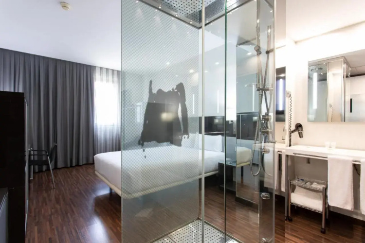 Отель Ciudad de Mostoles предлагает забронировать 90 изысканных номеров и 1 представительский люкс с отдельной спальней и гостиной, площадью 50 м². В каждом из их есть кондиционер, ЖК-телевизор с кабельными каналами, Wi-Fi, бесплатный мини-бар, а также фен и косметические принадлежности в ванной комнате.