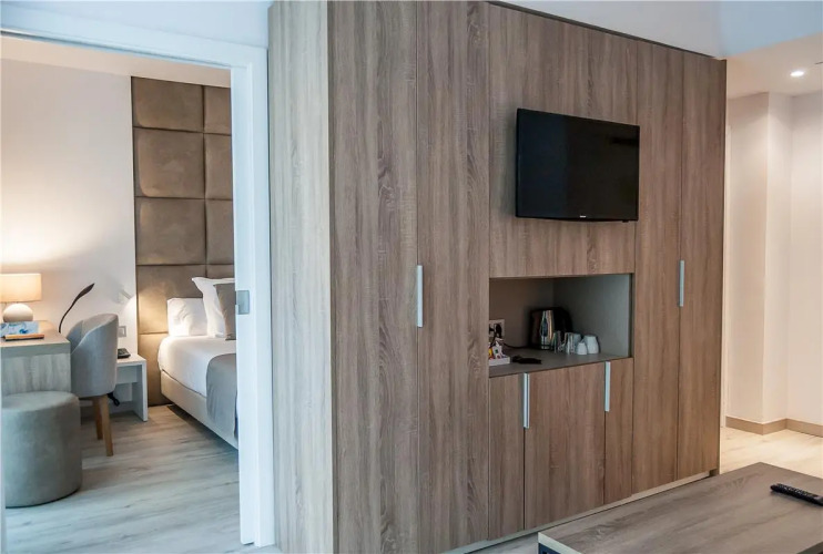 Небольшой отель BQ Anfora предоставляет гостям 61 светлый номер. Номера оформлены в светлых тонах, с белыми стенами и картинами. В них имеется кондиционер и балкон.