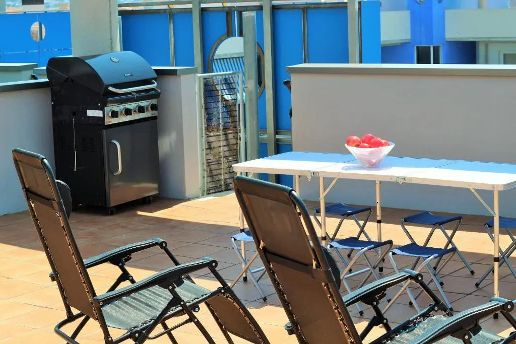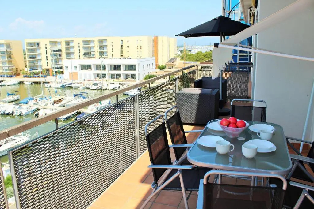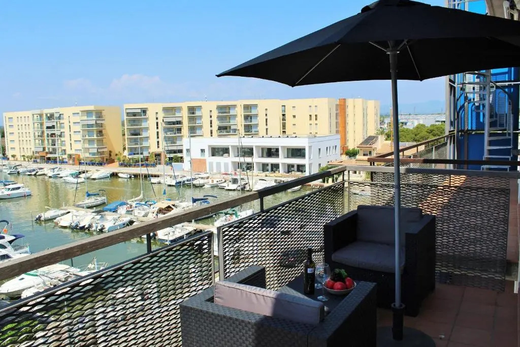 Отель Blue Duplex Penthouse B 402, panoramic views, close to the sea, relax-tranquility, адрес на карте Курорт Росес, 1 Avinguda Port Canigó, с характеристиками номеров и возможностью онлайн бронирования на сайте ВашОтель.RU , стоимость проживания и удобства.