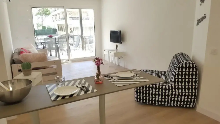 Отель Apartamento Salou 8 personas 100m playa, адрес на карте Салоу, Calle Vendrell Edificio Torrealta, num.7, 1 2D, с описанием номеров и доступностью онлайн бронирования на сайте ВашОтель.RU , цены проживания и удобства.
