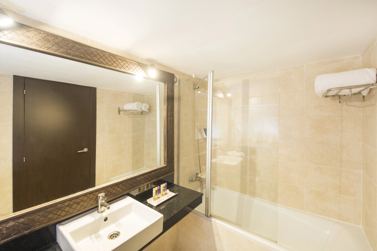 Номер уютно обставлен и оснащён необходимым, чтобы отдохнуть после долгого и насыщенного дня. Имеются будильник, телевизор, халат и тапочки. Оснащение зависит от выбранной категории номера.