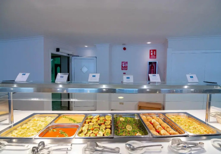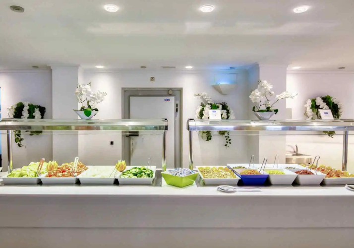 Каждое утро в отеле сервируется завтрак шведский стол. На обед и на ужин можно насладиться блюдами средиземноморской или интернациональной кухонь в ресторане отеля. В ресторане есть летняя терраса. Бар предлагает разнообразные напитки и закуски.