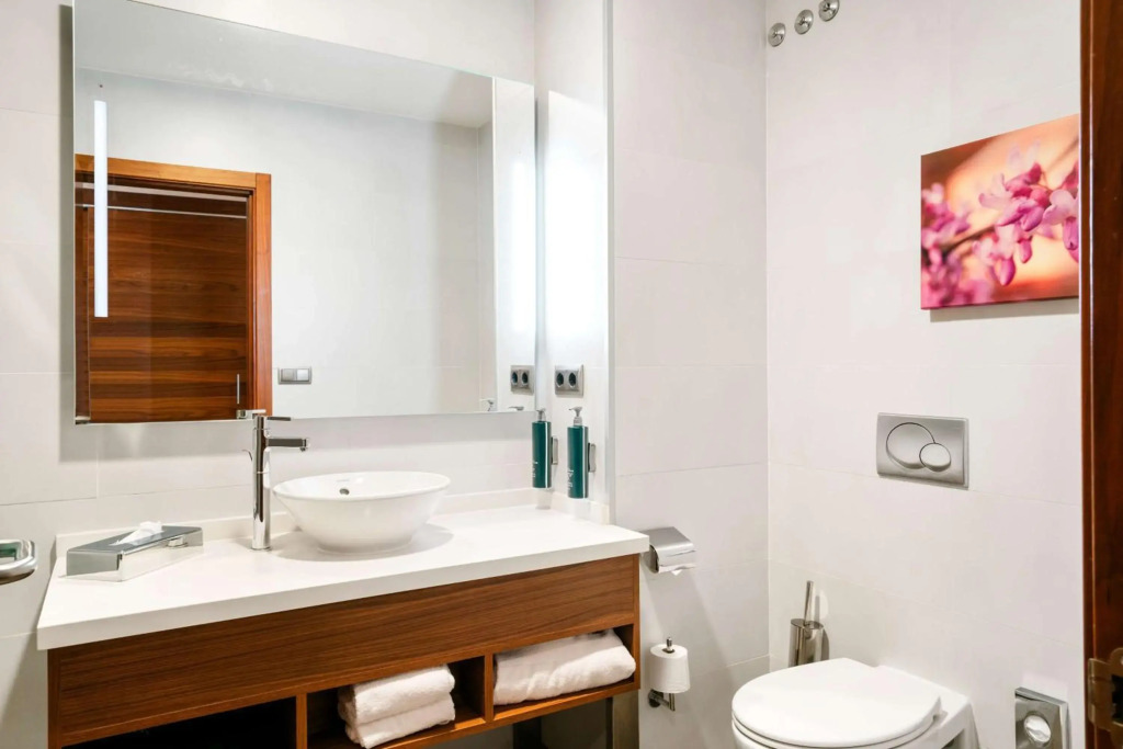 В номере вы найдёте душ и телевизор. Оснащение зависит от выбранной категории номера.