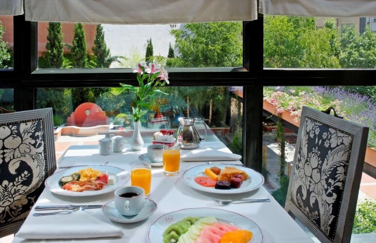 Каждое утро в бутик-отеле Melia Recoletos сервируется разнообразный завтрак "шведский стол", который включает много фруктов, свежие соки и ароматную выпечку. В элегантном ресторане El Hereje с просторной террасой вы можете насладиться восхитительными блюдами местной кухни и любимыми напитками, а также полюбоваться живописными видами на сады. Обслуживание производится по меню. Чтобы отведать традиционный испанский тапас и восхитительную сангрию, посетите уютный бар.