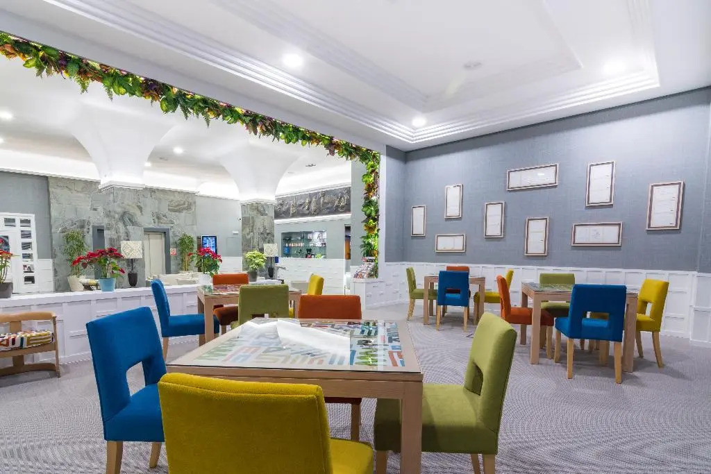 Скоротать вечер или приятно провести время перед сном в уютной атмосфере можно в баре. Для гостей работает ресторан. Удобно для гостей с ограниченными возможностями: на верхние этажи гостей поднимает лифт. А ещё в распоряжении гостей прачечная и пресса.