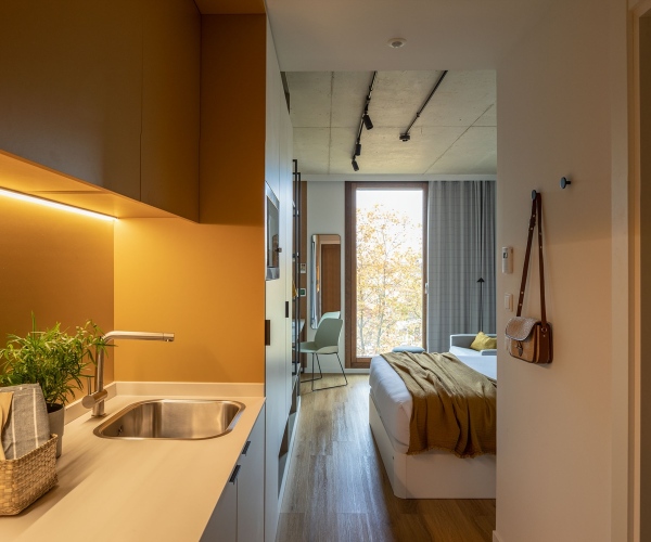 Любимца не придётся оставлять дома: разрешается проживание с питомцем. Удобно для гостей с ограниченными возможностями: на верхние этажи гостей поднимает лифт. А ещё в распоряжении гостей прачечная и консьерж.