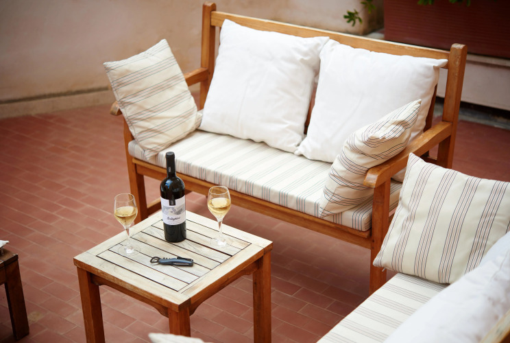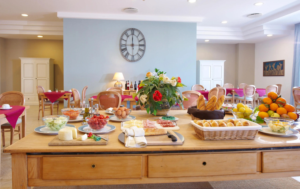 Во внутреннем дворике отелядля гостей сервируется завтрак шведский стол, который при необходимости может быть подан в номер. В винном баре, который находится в подвальном помещении, вы можете попробовать различные изысканные вина.