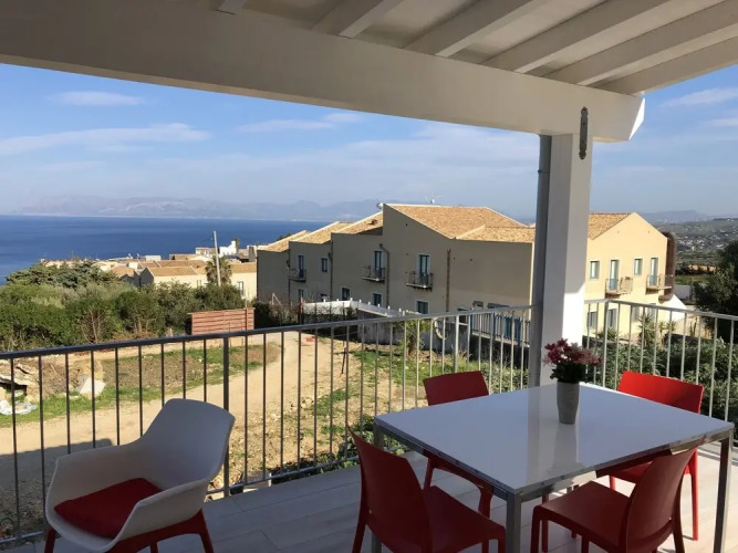 Отель La Veranda Sul Mare Apartment 2 Km From the Zingaro Nature Reserve, адрес на карте Кастелламмаре-дель-Голфо, traversa di Via Finanziere Vincenzo, с описанием номеров и доступностью онлайн бронирования на сайте vashotel.ru , цены проживания и удобства.