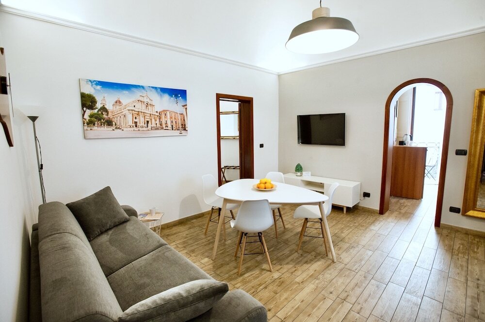 Подходящий вариант для большой компании: апартаменты «Il Magnifico Apartment» располагаются в Катании. Эти апартаменты находятся 1 км от центра города. Рядом с апартаментами — Порт Катания, Театр Массимо Беллини и Дворец Бискари.