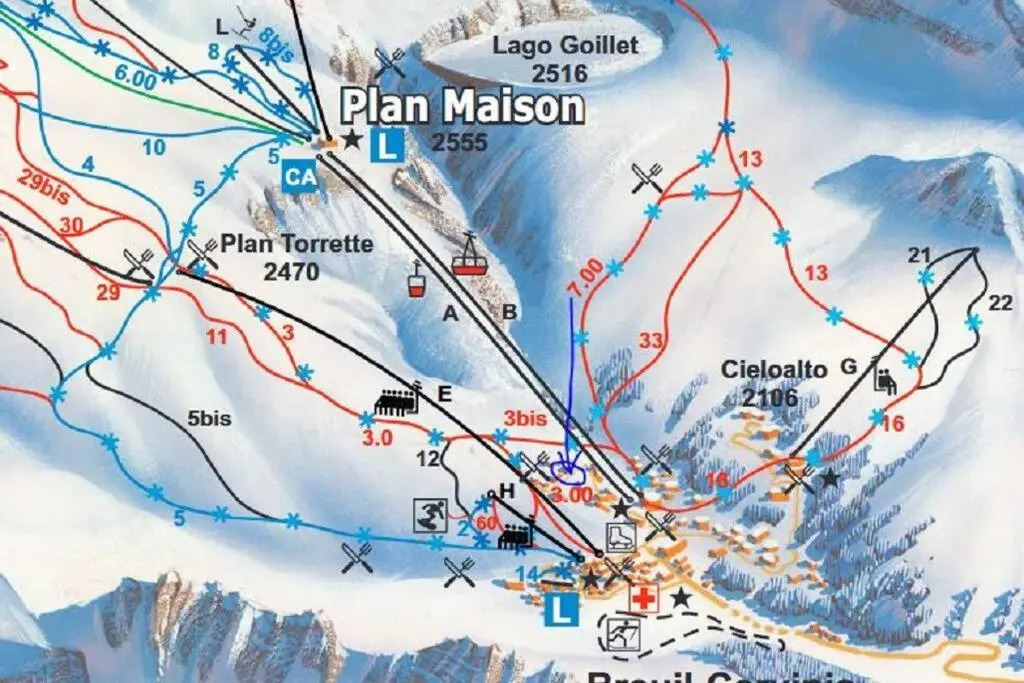 адрес на карте Червиния, 15a Via Giomein Condominio Cime D'Aver, 11021 Breuil-Cervinia, Italy, с характеристиками