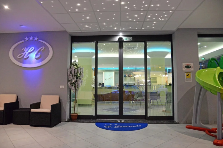 Отель Concorde 3 звезды, адрес на карте Чезенатико, Via Giovanni da Verazzano 15, с характеристиками номеров и возможностью онлайн бронирования на сайте ВашОтель.RU , стоимость проживания и удобства.