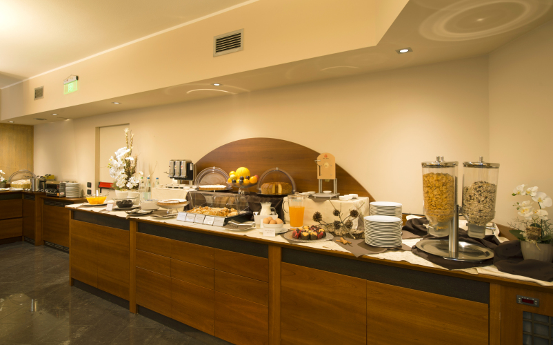 Каждое утро Hotel MilanoRe приглашает гостей на завтрак, который накрывается в виде «шведского стола». Выпить чашечку кофе или провести вечер с друзьями гости могут в уютном баре.