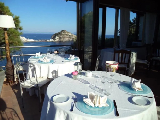 В 4-звездочном отеле Punta Chiarito Resort работает ресторан, где по утрам для гостей сервируют бесплатные завтраки “шведский стол”. На обед здесь подают традиционную кухню острова Искья, в том числе продукты собственного изготовления - оливковое масло, вино и джем. Вечерний коктейль в лобби-баре дополнит великолепный вид на Средиземное море, открывающийся из окна.