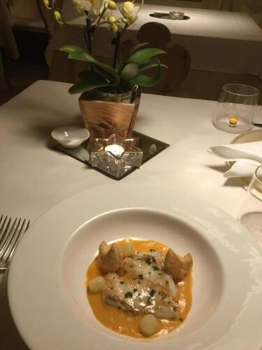 Для гостей в отеле работает основной ресторан, по принципу полупансиона, а также камерный ресторан Stube, ведущий свою историю с 1582 года с уникальным интерьером и охотничьими трофеями.