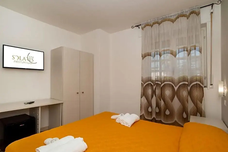 Бюджетный вариант для активного отдыха — отель «Solaris Paestum Hotel» находится в Капаччо-Пестум. Этот отель расположен в 8 км от центра города. Рядом с отелем можно прогуляться. Неподалёку: Стадион Аречи, Парк Меркателло и Национальный парк Чиленто и Валло-ди-Диано.