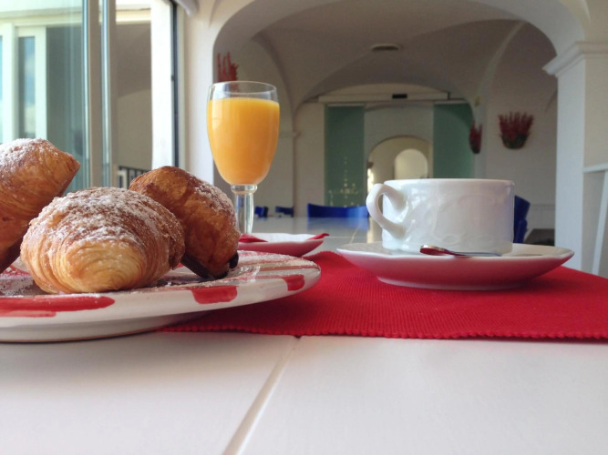 Каждое утро отель Le Terrazze приглашает своих гостей на завтрак «шведский стол», который сервируется в ресторане с видом на море. Подкрепиться легкими закусками и попробовать различные напитки вам предлагает бар в гостиной отеля.