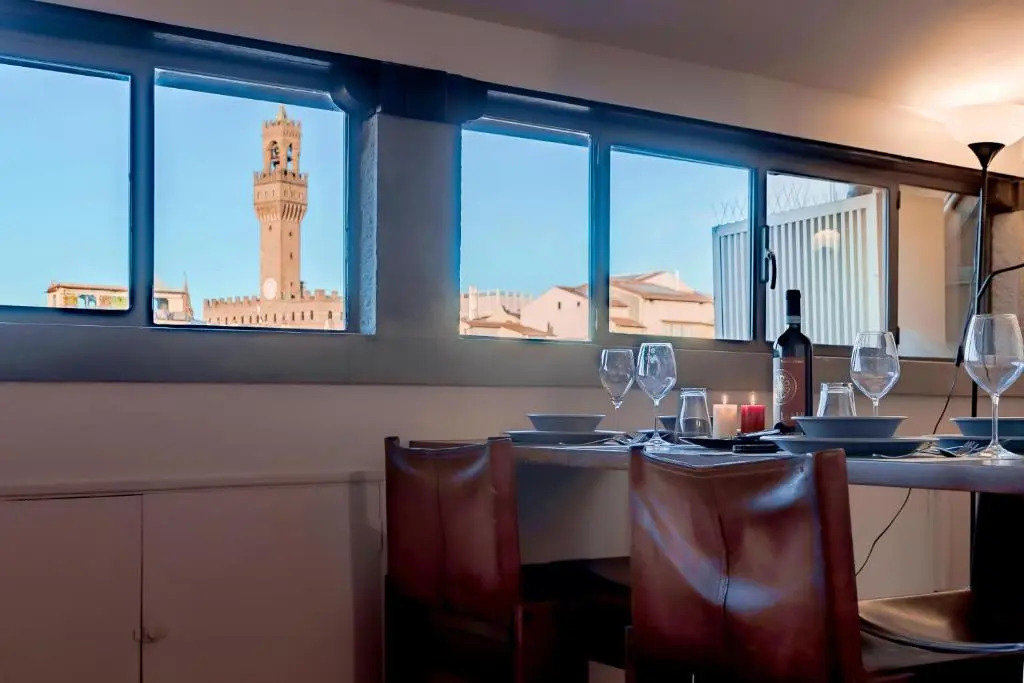 Подходящий вариант для большой компании: апартаменты «Skyline Florence Apartment» находятся во Флоренции. Эти апартаменты расположены в центре города. Утром — выпейте кофе, наблюдая из окна за жизнью города. Рядом с апартаментами — Мост Понте-Веккьо, Музей Галилея и Галерея Уффици.