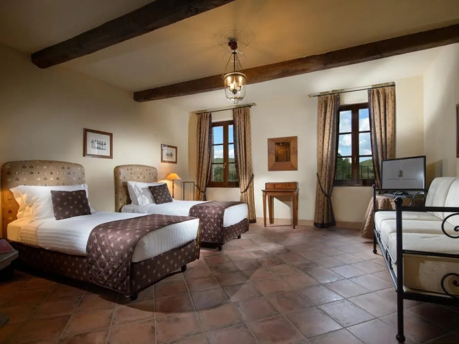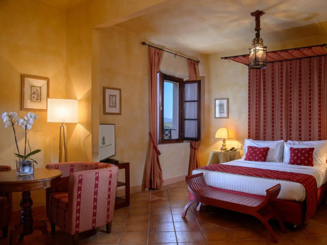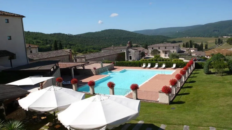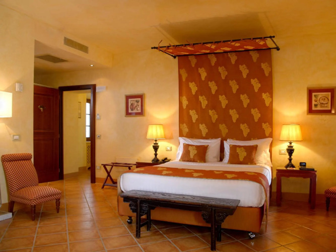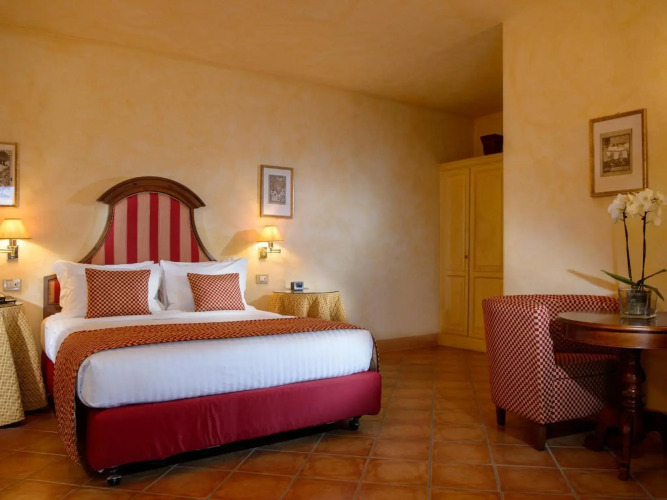 Отель La Bagnaia Resort Siena, адрес на карте Гроссето, Strada Statale 223 “Siena – Grosseto” Km 56, 53016, Località Bagnaia, Murlo (SI), Italy, с характеристиками номеров и доступностью онлайн бронирования на площадке vashotel.ru , цены проживания и удобства.