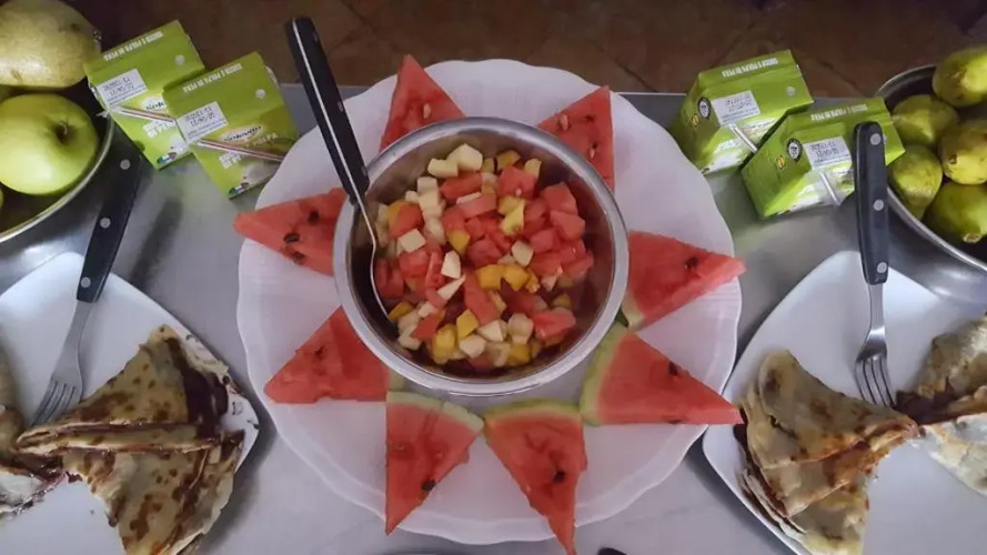 Поскольку гостевой дом находится на вершине холма, необходимо подняться на несколько ступенек по лестнице, чтобы попасть в него.