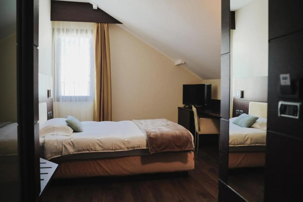 Номер уютно обставлен и оснащён необходимым, чтобы отдохнуть после долгого и насыщенного дня. Имеются душ, телевизор и тапочки. Оснащение зависит от выбранной категории номера.