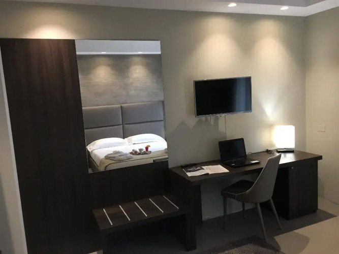 Номер уютно обставлен и оснащён необходимым, чтобы отдохнуть после долгого и насыщенного дня. Имеются душ и телевизор. Оснащение зависит от выбранной категории номера.