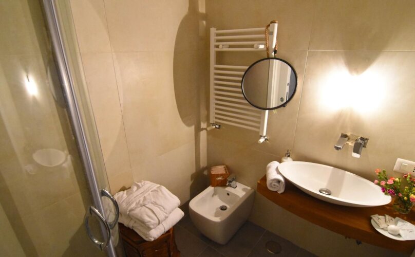 В номере вы найдёте телевизор и халат. Оснащение зависит от выбранной категории номера.