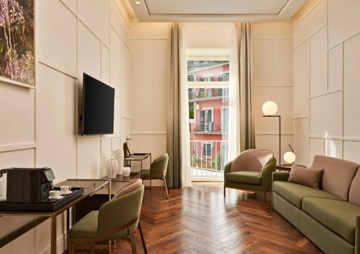 Отель The Britannique Naples Curio Collection by Hilton 5 звезд, адрес на карте Неаполь, Corso Vittorio Emanuele, 133, с характеристиками номеров и возможностью онлайн бронирования на ресурсе ВашОтель.RU , стоимость проживания и удобства.