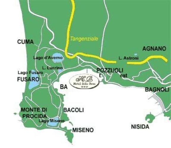 Отель Albergo delle Rose расположен на берегу Тирренского моря, в городке Поццуоли, в Италии. Рядом с отелем находится Храм Сераписа (2,9 км), Флавийский амфитеатр (3,2 км), а Неаполь находится в 20 км от отеля.