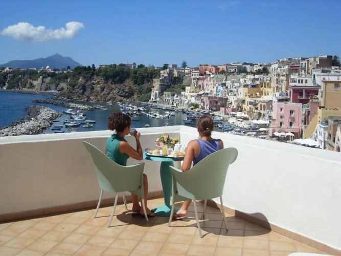 В погоне за впечатлениями важно возвращаться туда, где можно хорошо отдохнуть. Отель «Hotel La Corricella» расположен на Прочида. Этот отель находится в самом центре города. Утром — выпейте кофе, наблюдая из окна за жизнью города. Рядом с отелем можно прогуляться. Неподалёку: Порт Прочида, Пляж Поццо-Веккио и Арагонский замок.
