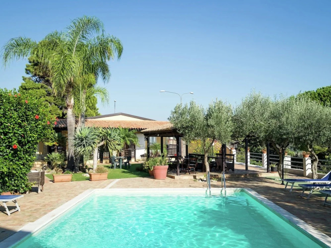Отель Holiday Home in Ribera With Swimming Pool, Garden, Veranda, адрес на карте Рибера, Piazza dei Pini 9, с описанием номеров и доступностью онлайн бронирования на сайте ВашОтель.RU , цены проживания и удобства.