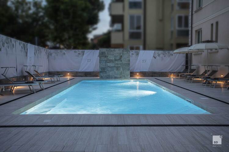 Спа-отель Regina Elena 57 & Oro Bianco располагается прямо на набережной Марина Сентро, в городе Римини. В километре от отеля гости могут посетить Римский амфитеатр. На расстоянии 1,5 километров от отеля вы увидите Арку императора Августа и Храм Малатеста. Международный аэропорт Федерико Феллини находится в 5 километрах от отеля.