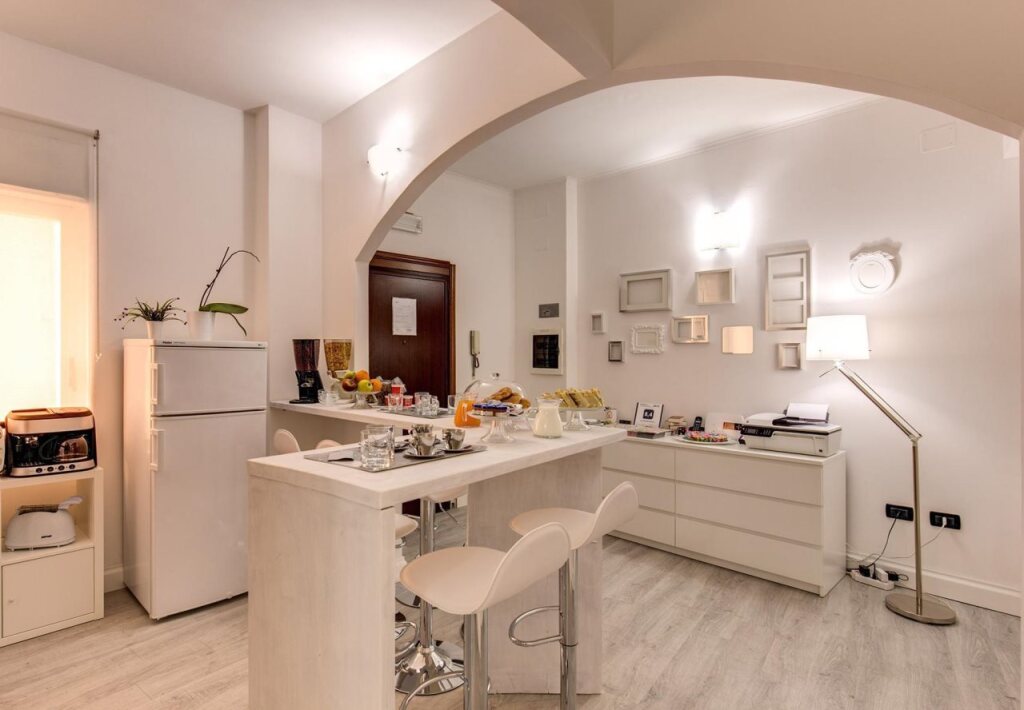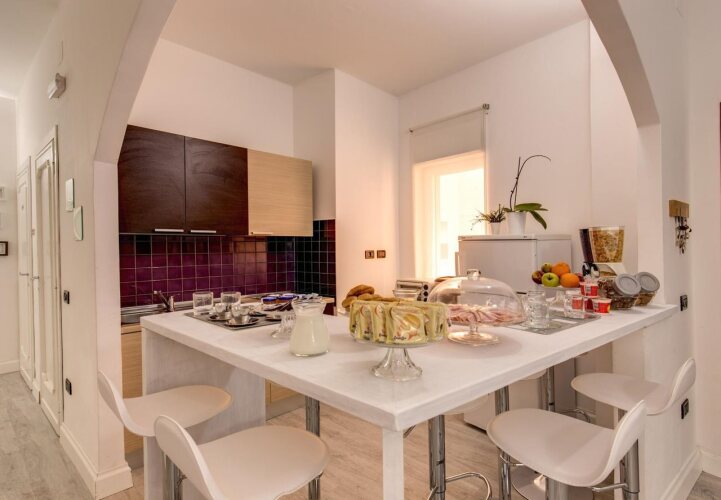 Каждое утро в гостиной сервируется итальянский завтрак, а в хорошую погоду гости могут позавтракать на террасе на крыше. Кроме того, к вашим услугам общая кухня, оборудованная всем необходимым для самостоятельного приготовления еды.