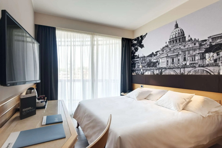 Для любителей активного отдыха в отеле имеется фитнес-центр, оборудованный по современным стандартам. В двух шагах от отеля вы найдете парк, где сможете заняться активными видами отдыха, а также провести время с семьей. В центре города вы найдете множество магазинов и бутиков, а также сможете посетить такие достопримечательности как Колизей и Ватикан.