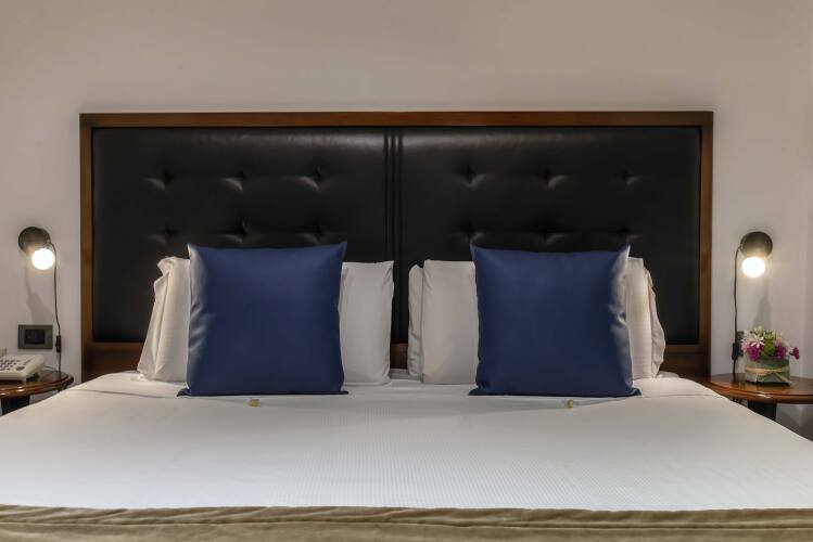 Номер уютно обставлен и оснащён необходимым, чтобы отдохнуть после долгого и насыщенного дня. Имеются телевизор и мини-бар. Оснащение зависит от выбранной категории номера.