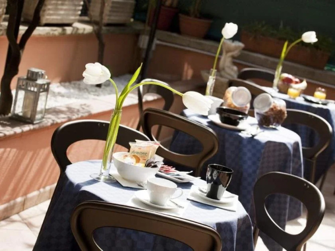 Отель Дюкале располагает великолепным садом, где вы можете насладиться традиционным итальянским завтраком в жаркие месяцы года. Также работает бар-гостиная. В округе множество национальных ресторанов, уютных тратторий и баров.