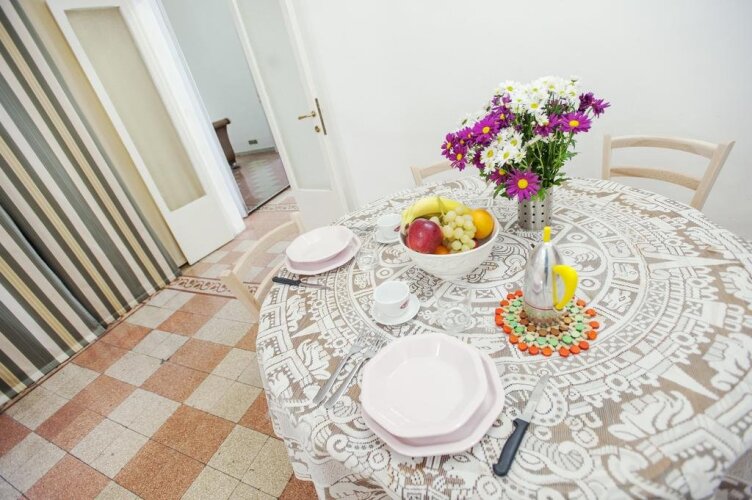 Находящиеся на 3 этаже старинного дома апартаменты оснащены всем необходимым и могут вместить до 5 человек. Интерьер выполнен в ярких и светлых тонах, гармонирующих с жизнерадостной атмосферой вечного города. В апартаментах имеется доступ в Интернет.